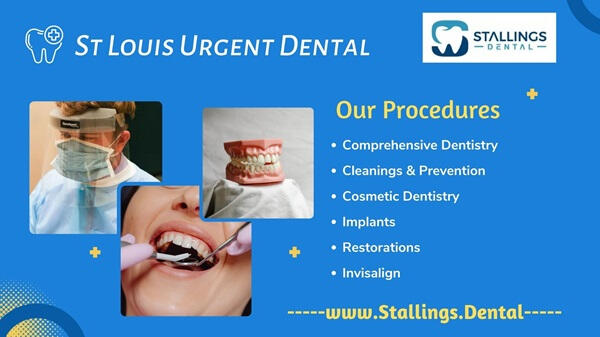 In the bustling city of St. Louis, dental emergencies can happen when least expected. Whether it's a sudden toothache, a knocked-out tooth, or a broken crown, these situations demand immediate attention to alleviate pain and prevent further complications. When such dental crises arise, Stallings Dental emerges as the trusted ally for residents in need of urgent dental care.Located conveniently in St. Louis, Stallings Dental boasts a team of highly skilled dentists equipped with the latest tools and techniques to address a wide range of dental emergencies. From severe toothaches to unexpected injuries, their professionals are adept at diagnosing and treating urgent dental issues with precision and care.What sets Stallings Dental apart is their unwavering commitment to patient comfort and satisfaction. They understand the anxiety and distress that often accompany dental emergencies and strive to create a calming and supportive environment for every patient. From the moment you step into their office, you can expect to be greeted with warmth and empathy as their team works swiftly to alleviate your pain and restore your oral health.Moreover, Stallings Dentalprioritizes accessibility, ensuring that patients can receive the care they need exactly when they need it. With flexible scheduling options and accommodating appointment times, they make it easy for individuals experiencing dental emergencies to seek prompt treatment without delay. Whether it's during regular office hours or after-hours emergencies, Stallings Dental is there to provide timely and effective solutions for all urgent dental needs in St. Louis.Furthermore, patients can trust in the expertise and experience of Stallings Dental's dentists. With years of training and a dedication to staying abreast of the latest advancements in dental care, their professionals deliver results that exceed expectations. Whether you require a simple filling or complex emergency dental surgery, you can rest assured that you're in capable hands at Stallings Dental.